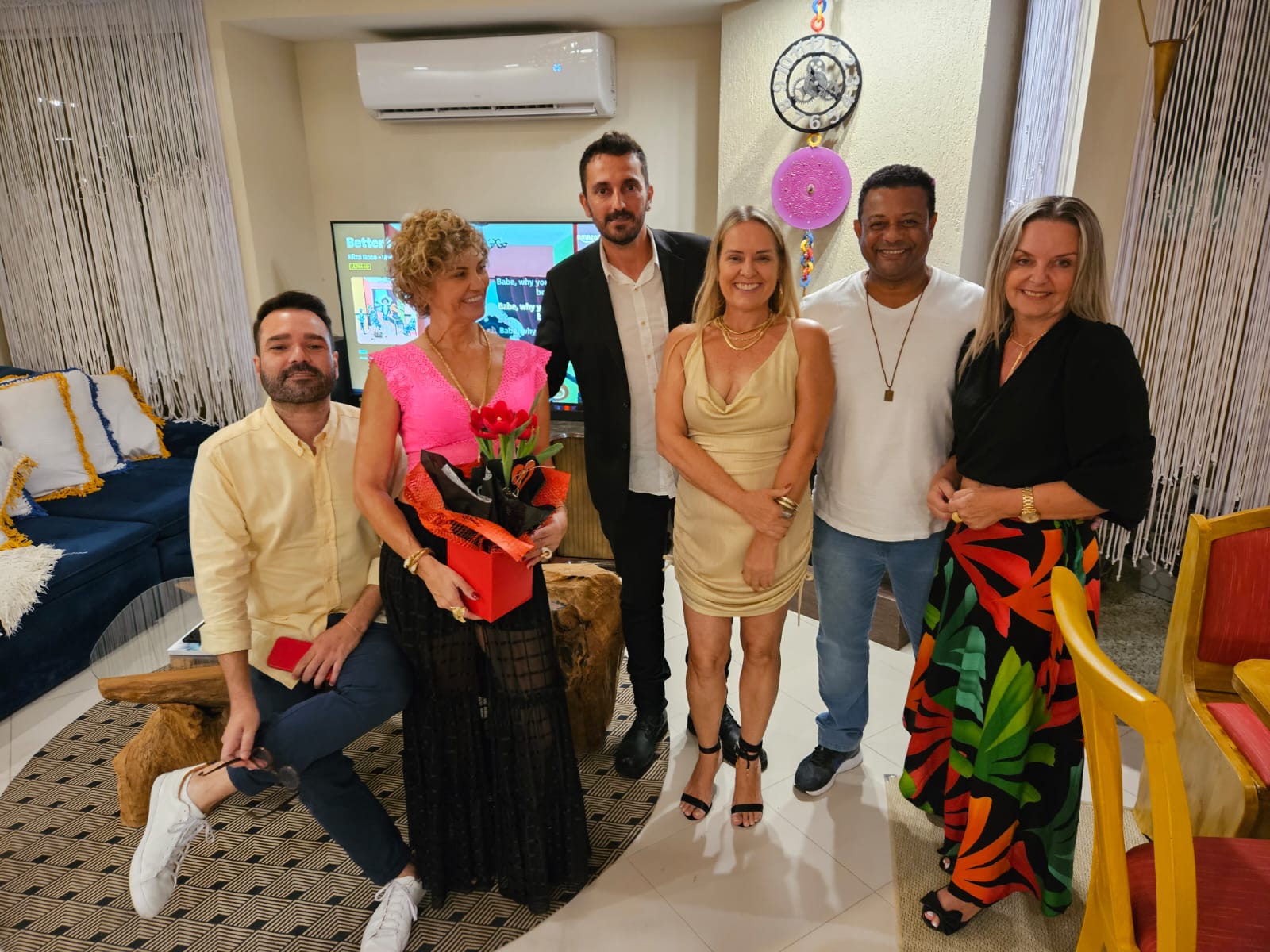 E para comemorar os 22 anos de sua ída para os EUA, resolveu reunir amigos para se confraternizar e se despedir, pois, após 3 meses estar de férias em Navegantes na sua residência, volta para a Flórida, mas, segundo ela, logo retornará.