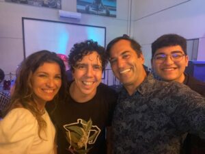 Na foto, o empresário Cláudio André ( c) ao lado do cantor San, da esposa Hellany (E) e do filho Erik Brum (D).