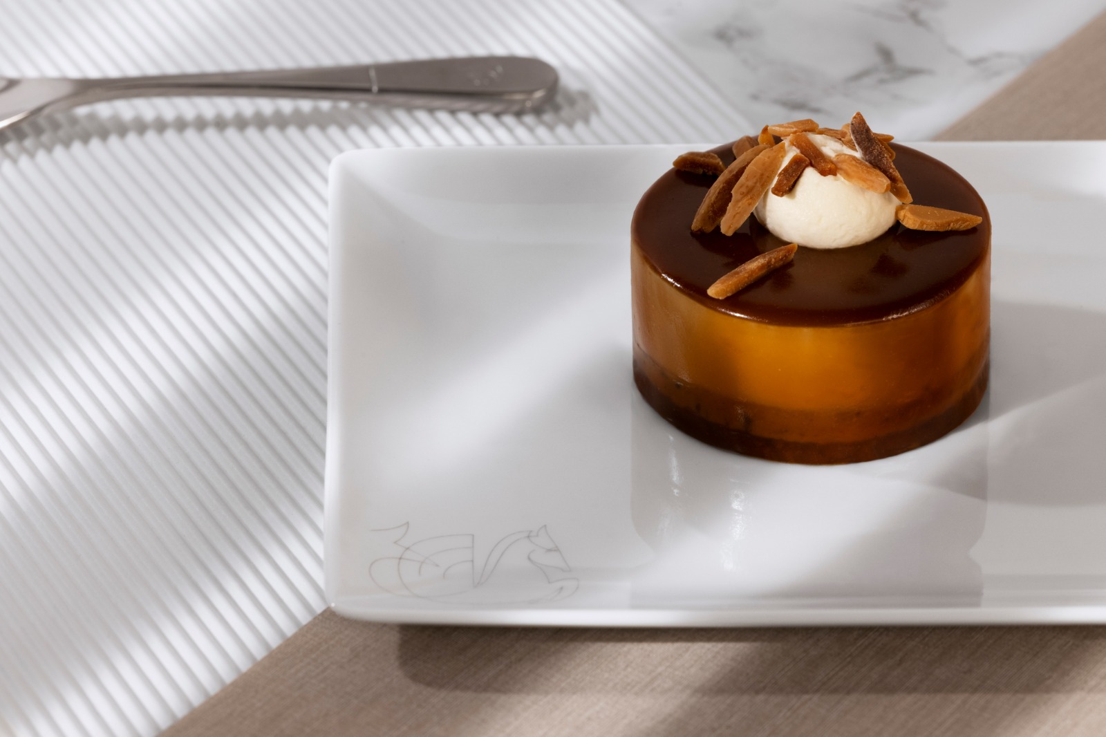Quanto às sobremesas, o chef Philippe Urraca, Meilleur Ouvrier de France e expoente máximo da tradição confeiteira francesa, elaborou quatro opções para escolha do cliente no menu à la carte, disponível a bordo de forma rotativa: