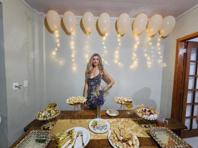 E com muito tim tim, comemorou a chegada de seus 33 anos, com festa em sua residência.