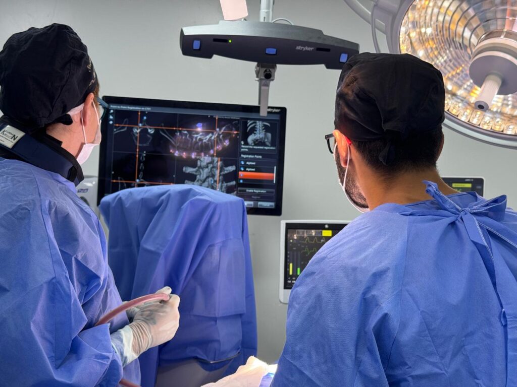 Segundo o Dr. Rafael, a tecnologia representa um avanço decisivo. “Com o neuronavegador temos uma visualização detalhada das estruturas ósseas e podemos posicionar os implantes com precisão milimétrica. Isso reduz significativamente o risco de lesão neurológica e melhora o tempo de recuperação dos pacientes”, explica.