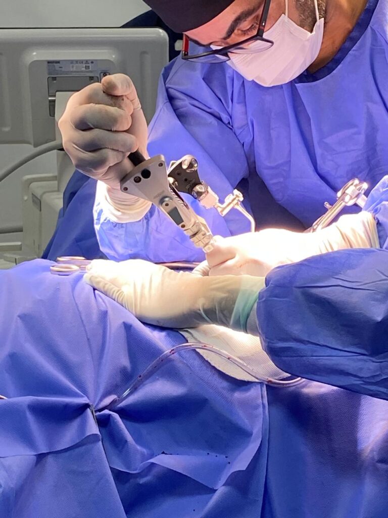 As primeiras cirurgias com uso da nova tecnologia ocorreram na quarta e sexta-feira da última semana (26 e 28), após intenso treinamento com médicos, enfermeiros, instrumentistas e equipe de apoio, promovido pela empresa responsável pela tecnologia. Os dois primeiros procedimentos, realizados pelo SUS, foram conduzidos pelo neurocirurgião Dr. Rafael Cordeiro dos Santos. A terceira cirurgia foi feita via convênio pelo ortopedista Dr. Paulo Vinícius Silva Salustiano.