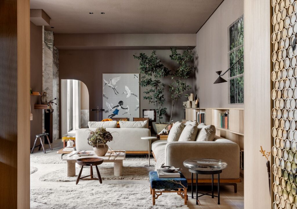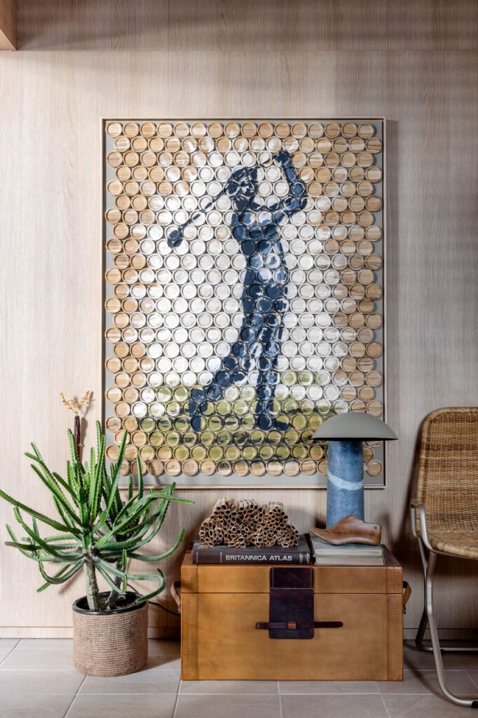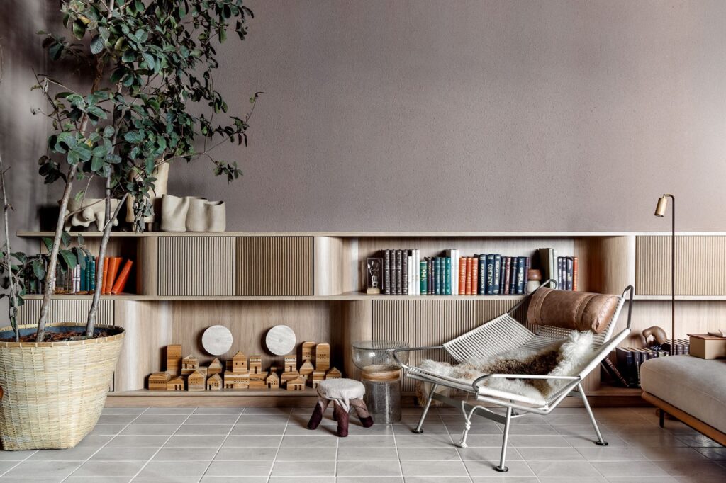 O Designer apostou em elementos como madeira, cerâmica, pedra e couro, para trazer aconchego, apostando no marrom como cor predominante, o que valorizou o tema proposto pela CASACOR neste ano, SEMEAR SONHOS.