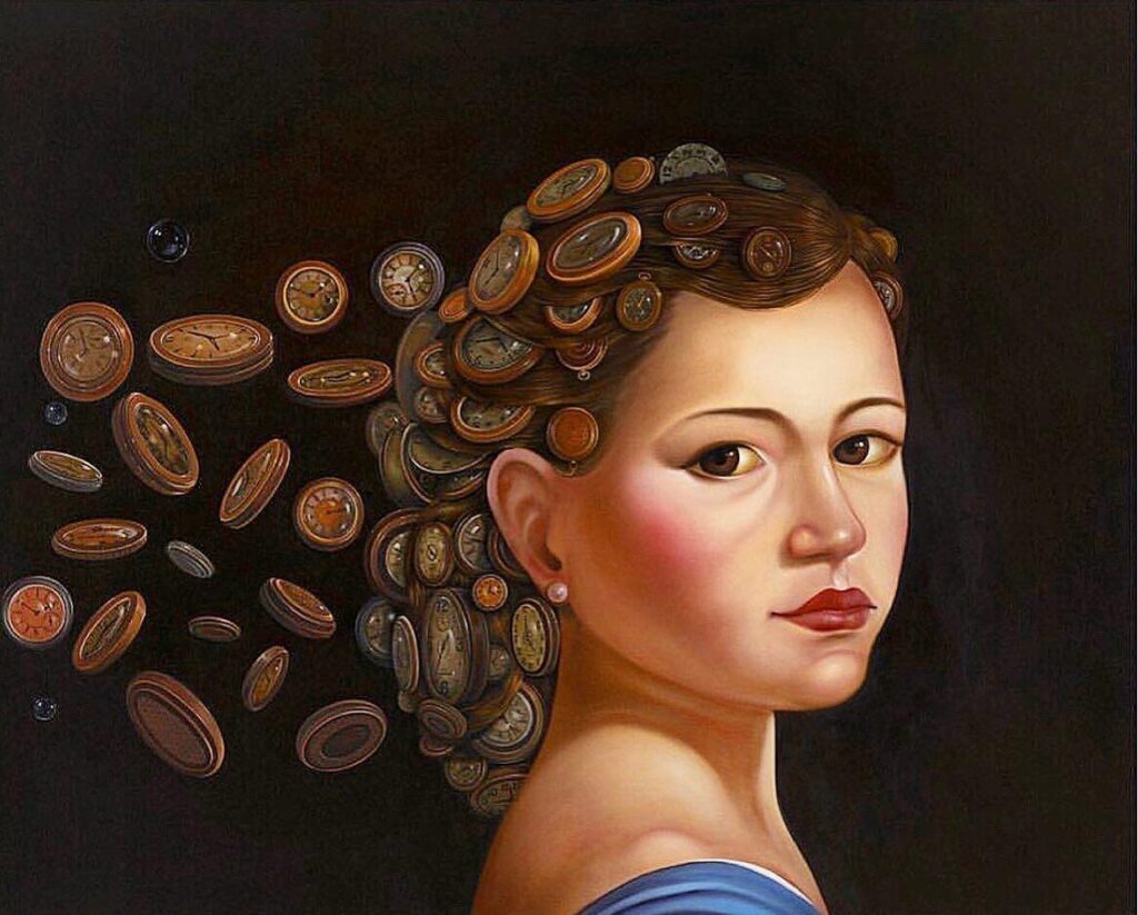 Essa reflexão perpassa toda a carreira de Luiz, que há décadas explora a tensão entre o efêmero e o duradouro em suas pinturas e esculturas. Em obras como Contagem Regressiva, com a figura em uma motocicleta que se move no sentido anti-horário em relação aos ponteiros do relógio, como se estivesse voltando no tempo para refazer o caminho percorrido, ou nas criações que abordam o extinto pássaro Dodô, Luiz questiona a arrogância humana e nossa tentativa de dominar a natureza e o tempo. “O eterno pode ser o momento em que a tua mãe te fez um carinho, ou uma construção que dura séculos”, pontua. Ao mergulhar por horas na pintura, o artista experimenta pessoalmente essa relatividade do tempo — “às vezes eu começo a trabalhar às 11 da noite e, quando vejo, o dia amanheceu”, comenta reafirmando sua busca constante por imortalizar sentimentos e reflexões e convidando o público para pensar sobre sua própria finitude e legado.