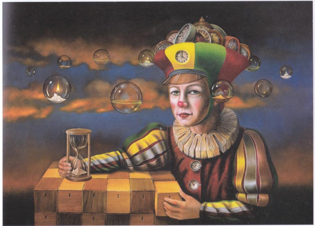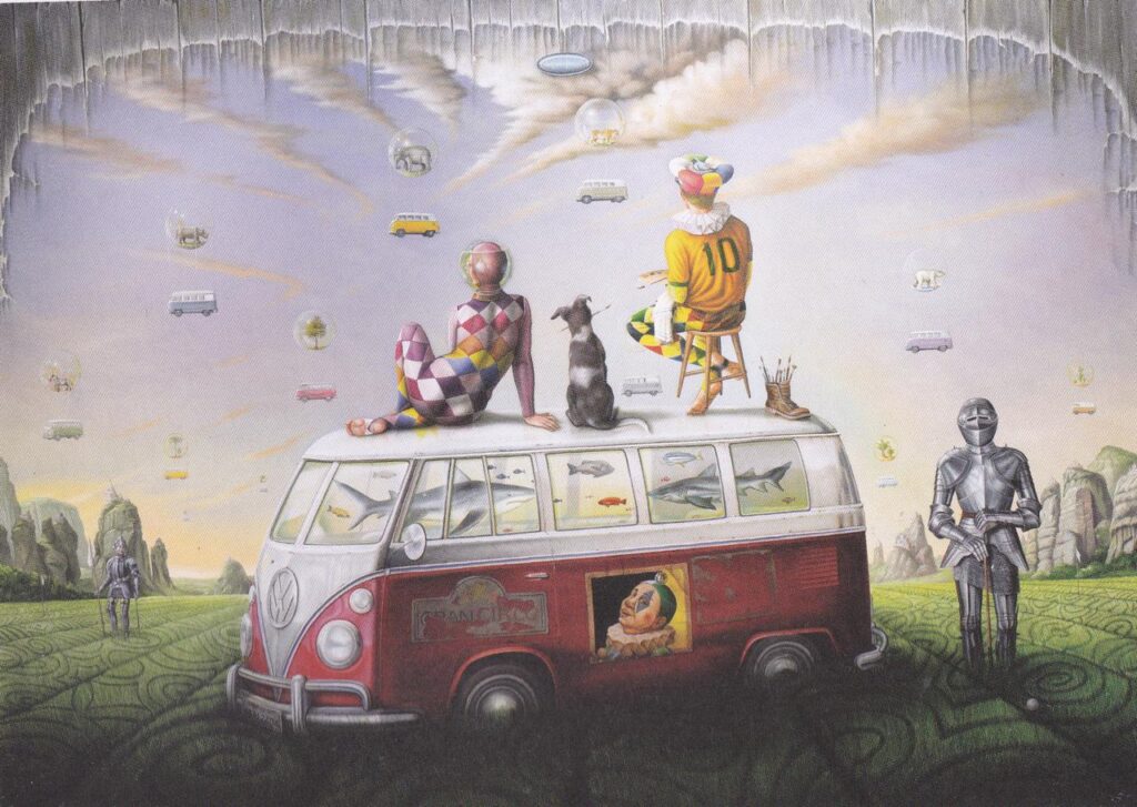 Hoje, com obras espalhadas pelo Brasil e Europa, Luiz de Souza transita principalmente no realismo fantástico, criando narrativas visuais cheias de cor e simbologia crítica. Seja em retratos, figuras alegóricas ou personagens inspirados na commedia dell’arte, sua pintura revela muito além do impacto estético inicial: há sempre uma história escondida, esperando ser descoberta.