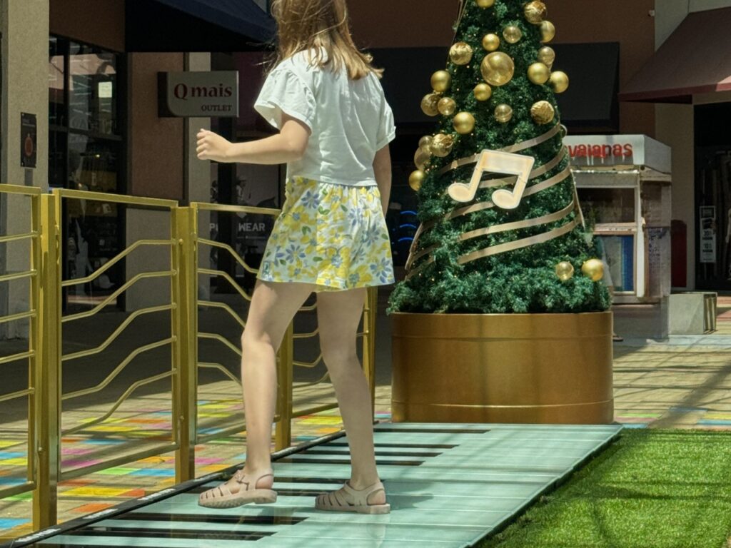Quem já sonhou em repetir a cena clássica do filme Quero Ser Grande, em que Tom Hanks toca melodias dançando sobre um piano gigante, agora pode viver esse momento no Porto Belo Outlet Premium, no litoral de Santa Catarina. A estrela do Natal Musical – tema da decoração natalina do empreendimento neste ano – é justamente um piano de grandes proporções instalado ao ar livre, onde adultos e crianças usam os pés para fazer música, uma experiência divertida, nostálgica e irresistivelmente instagramável que se tornou o principal ponto de visitação do circuito natalino.