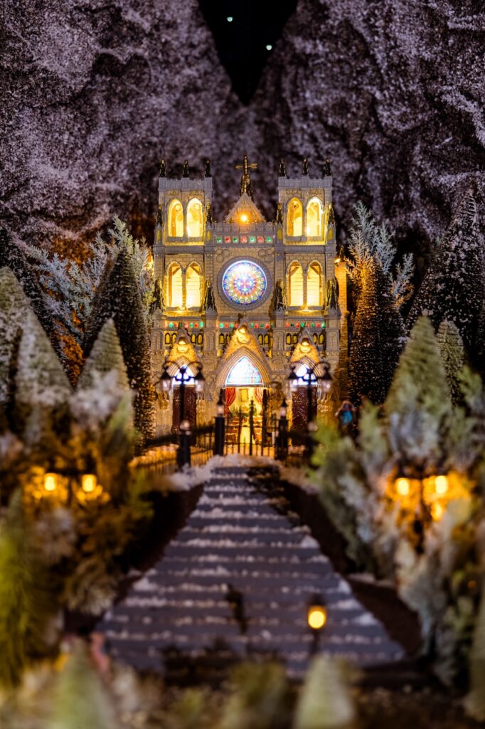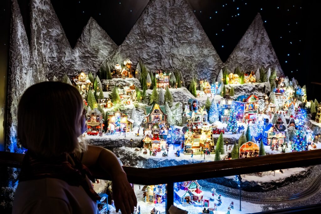 guiada por trilhos, luzes e seis vilas temáticas