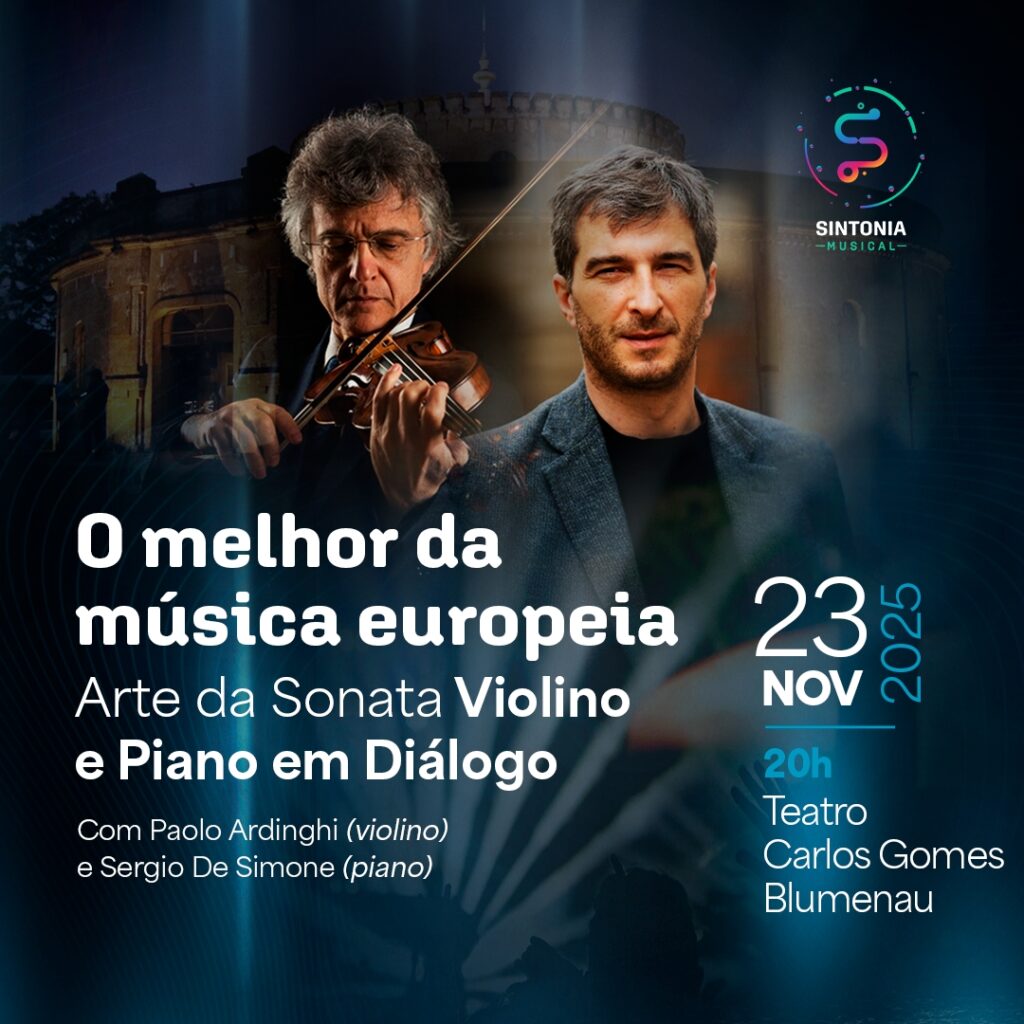 Com ingressos já à venda, concerto marca o lançamento do Sintonia Musical no Brasil e promete uma noite de excelência artística com obras de Mozart, Brahms e Grieg Curitiba e Blumenau recebem, nos dias 21 e 23 de novembro, uma noite de pura elegância e virtuosismo com o concerto internacional “A Arte da Sonata – Violino e […]